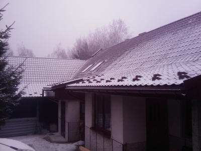 tarasu. Dachy przykryte blachodachówką dwumodułową