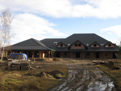 Skomplikowana więźba wymagająca dużej precyzji i zaangażowania, bardzo czasochłonna. Podstawa to dach czterospadowy - kopertowy. Dodatkowo sześć facjat z których dwie jedną połacią zintegrowane z głównymi połaciami budynku.